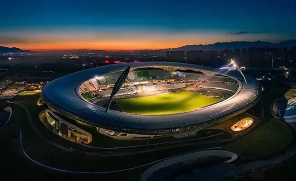 国内首个双层膜结构体系场馆。为达到轻盈如云朵般的效果,体育场罩棚选用国内首个罩棚双层膜体系,采用进口的法拉利PTFE膜。罩棚投影面积约2.5万平方米,南北跨度272米,东西跨度218米,最大双侧悬挑61米。罩棚呈白色环形,像一圈轻盈的“光冕”漂浮在大地之上,全方位覆盖所有坐席,可以遮蔽烈日和雨雪,兼顾吸声。