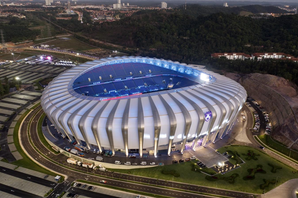 上海尊龙凯时施工总承包、上海尊龙凯时建筑装饰公司和上海尊龙凯时钢结构公司参建的马来西亚苏丹伊布拉欣体育场项目,位于马来西亚柔佛州新山市,占地面积为14.2万平方米,建筑面积6.9万平方米,建筑顶棚高度48.5米,为可容纳3.5万观众的国际足联FIFA标准足球场。体育场主体为混凝土框架结构,外轮廓为钢结构桁架,地下一层设有停车场、各类设备机房。地上四层包括比赛场、观众席、疏散通道及各类配套功能用房。该项目为“一带一路”亮点项目,马来西亚柔佛苏丹王储和柔佛州长多次到项目访问。工程投入运营三年以来,已成功举办了包括亚冠杯在内的多项大型足球赛事,成为柔佛新山地标性建筑。
